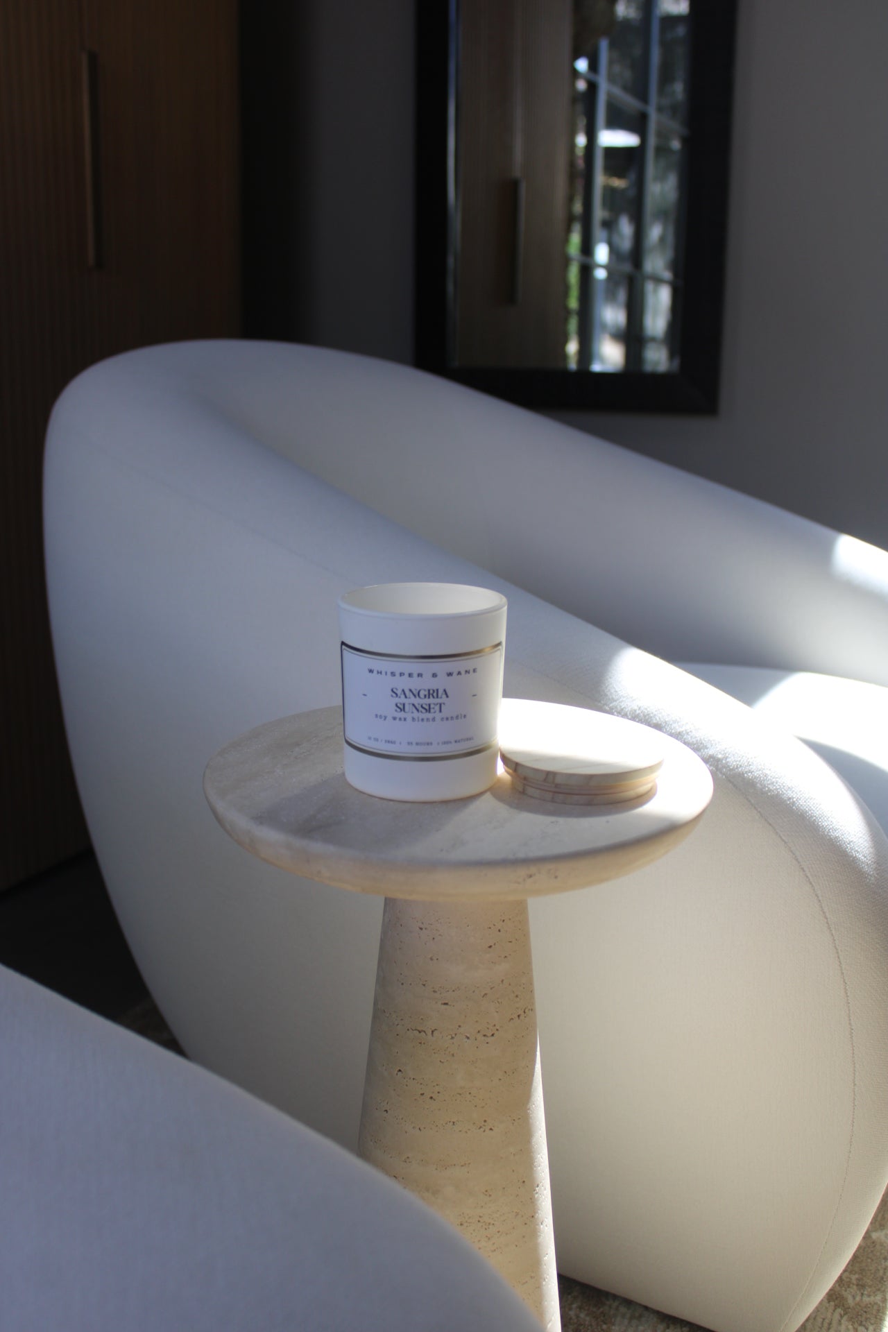 Sangria Sunset is a vibrant, fruity fragrance that captures the feeling of a warm summer evening. Bright notes of sparkling citrus, red currant, apple, and peach create a refreshing first impression. A heart of wine accord, tart berry, rose petals, and rhubarb adds a playful, sophisticated touch. Finished with a smooth base of sugar, vanilla, and wood, this scent brings the warmth of sunset and the joy of good company into any space.